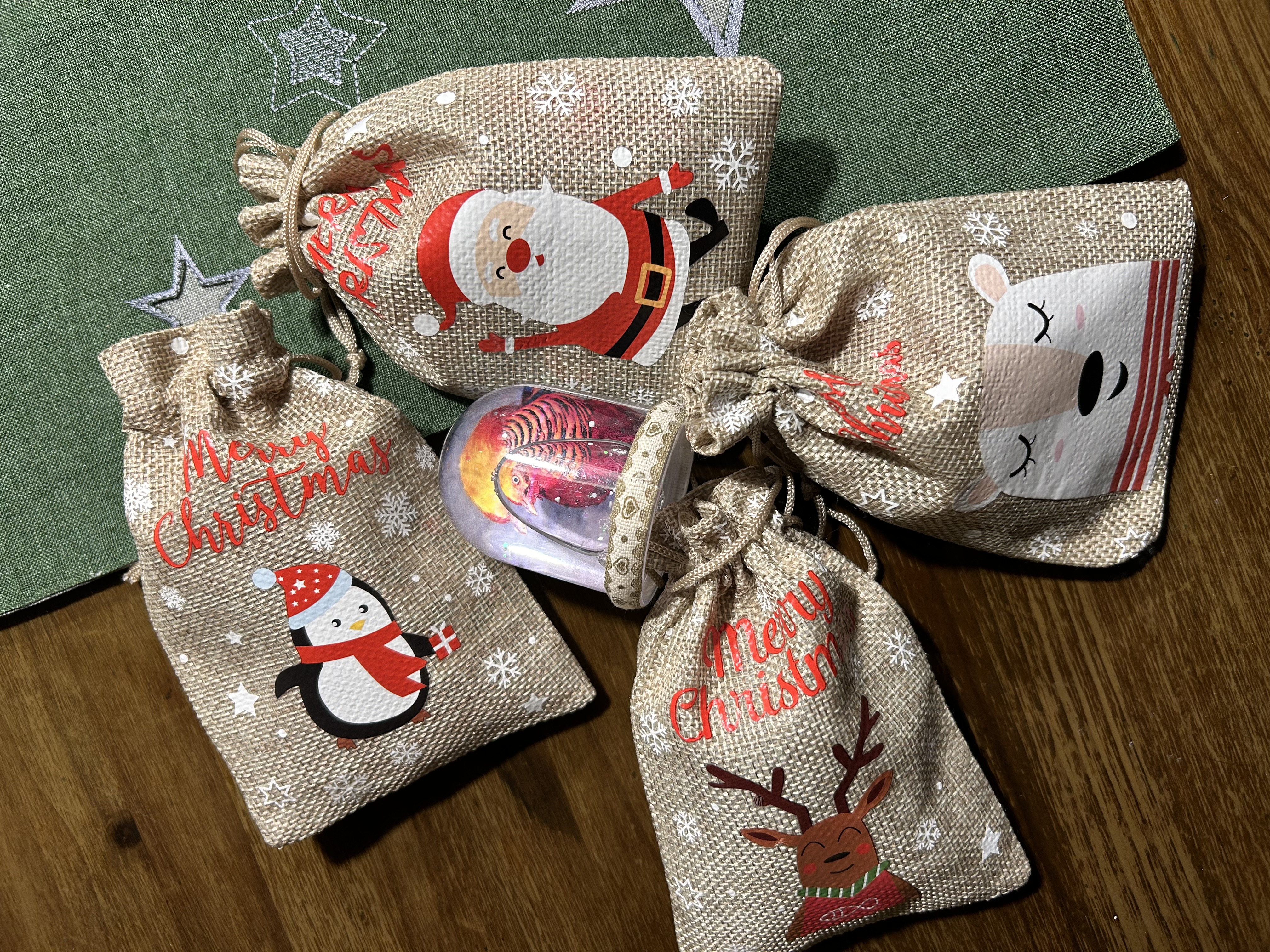 Wir haben als Dankeschön kleine Geschenksackerl mit Süßigkeiten drinnen bekommen und eine Schneekugel mit dem Bild von Goldi. |